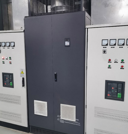 Projemizde, hava kompresörünün sürülmesi için 630 kW kapasiteli kabin tipi VFD (Infineon IGBT modüllü) tercih edilmiştir. Çift işlemcili kontrol yapısı, motoru iki ayrı kontrol devresiyle senkronize şekilde yöneterek titreşimi azaltır ve kararlılığı artırır. Sistemde yer alan yüksek güçlü bağımsız fan, ısının çerçeveden etkin şekilde uzaklaştırılmasını sağlayarak ekipmanın ömrünü uzatır ve çalışma verimliliğini yükseltir.